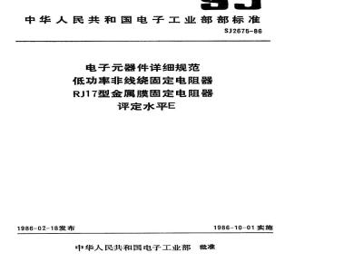 SJ 2675-1986 电子器件详细规范 低功率非线绕固定电阻器RJ17型金属膜固定电阻器 评定水平E SJ2675-1986 标准下载解压密码:www.bzxz.net