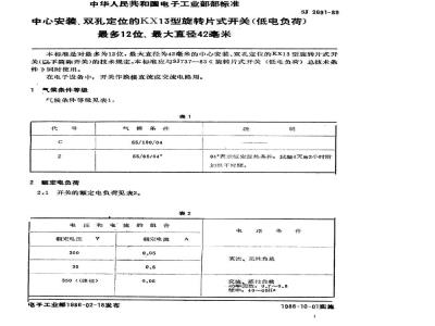 本标准是对最多为12位,最大直径为42毫米的中心安装、双孔定位的KX13型旋转片式开关(以下简称开关)的技术规定。本标准应与SJ737-83《旋转片式开关(低电负荷)总技术条件》同时使用。