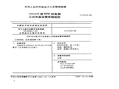 SJ 2702-1986 3DG458型NPN硅高频小功率晶体管详细规范 SJ2702-1986 标准下载解压密码:www.bzxz.net