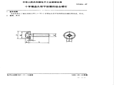 中华人民共和国电子工业部部标准十字槽盘头带平垫圈的组合螺钉SJ283487