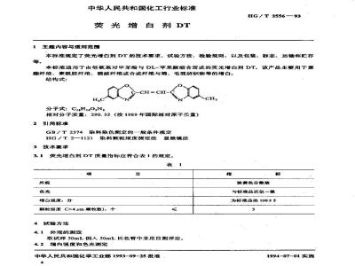 本标准出中华人民共和国化学工业部科技司提出。本标准由化学工业部沈阳化工研究院技术归口。本标准由化学工业部沈阳化工研究院及金华市染料化工厂负责起草,本标准主要起草人刘汉民、庄剑平、叶佩玉、郑小英、本标准自实施之日起原中华人民共和国专业标准·ZBG57011—89效荧光增白剂DT》作废。