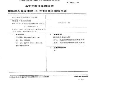 SJ 2906-1988 电子器件详细规范 厚膜混合集成电路CHM7103高压限制电路 SJ2906-1988 标准下载解压密码:www.bzxz.net