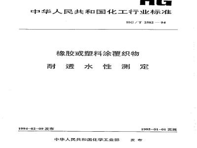 原标准号GB 5571-85 HG/T 2582-1994 橡胶或塑料涂覆织物 耐透水性测定 HG/T2582-1994 标准下载解压密码:www.bzxz.net