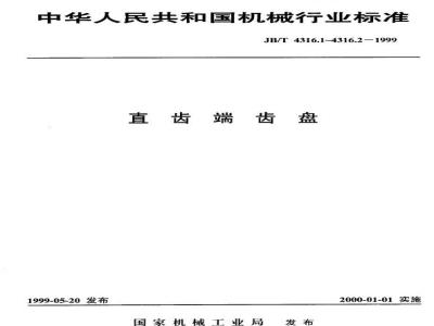 本标准是在JB4316—86《直齿端齿盘系列参数和尺寸》的基础上修订的。本标准与JB4316—-86的技术内容一致,仅按有关规定重新进行了编辑。本标准是JB/T4316《直齿端齿盘》系列标准的-部分。该系列标准包括以下两个部分:JB/T4316.1—1999直齿端齿盘系列参数和尺寸JB/T4316.2—1999直齿端齿盘精度检验本标准自实施之日起代替JB4316—86。本标准的附录A和附录B都是提示的附录。本标准由全国金属切前机床标准化技术委员会提出。本标准由全国金属切削机床标准化技术委员会组合机床分会归口。本标准负责起草单位:大连组合机床研究所、豫西机床厂,沈阳第二机床厂。本标准于1986年首次发布。