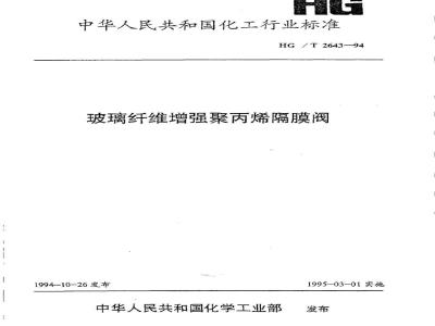 HG/T 2643-1994 玻璃纤维增强聚丙烯隔膜阀 HG/T2643-1994 标准下载解压密码:www.bzxz.net