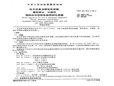 GB/T 5993-1986 电子设备用固定电容器 第四部分:分规范固体和非固体电解质铝电容器(可供认证用) GB/T5993-1986 标准下载解压密码:www.bzxz.net
