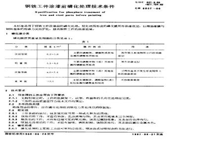 GB/T 6807-1986 钢铁工件涂漆前磷化处理技术条件 GB/T6807-1986 标准下载解压密码:www.bzxz.net
