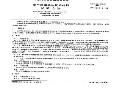 本标准适用于电气绝缘柔软复合材料的性能试验。本标准是参照采用国际标准IEC626-2(1978)《电气绝缘柔软复合材料规范第一部分:试验方法》制订的。
