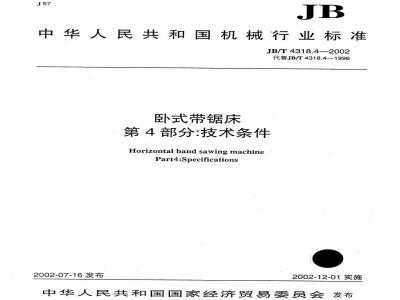 本部分代替JB/T4318.41996《卧式带锯床技术条件》。本部分与JB/T4318.4--1996相比,主要变化如下:适用范围扩大: