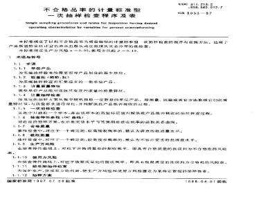本标准规定了以批不合格品率为质虽指标的计量标推型次抽样检查的程序与实施方法。适用了产品质量特征以计量值表示且服从或近似服从正态分布的批检查。木标准规定生产方风险±=0.05:使用方风险8=0.101 术语与符号