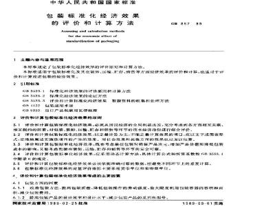 本标准定了包装标准化经济效果的评价原购和计算厅法。GB 85789