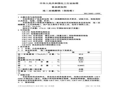 本标准由中华人民共和国化学工业部技术监督司提出。本标准由化学工业部天津化工研究院归口。本标准由化学工业部天津化工研究院、上海硫酸厂、无锡化工集团股份有限公司大众化工厂、汕头保险粉厂负责起草。本标准主要起草人时洁、宗克俭、陆永祥、郑建荣。本标准等效采用《日本食品添加物公定书》(1986年版)《保险粉》。自本标准实施之日起,原国家标准GB1647一1979《食品添加剂可保险粉》作废