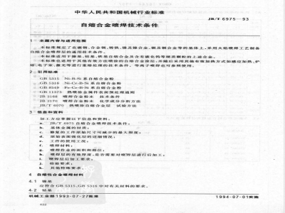 JB/T 6975-1993 自熔合金喷焊技术条件 JB/T6975-1993