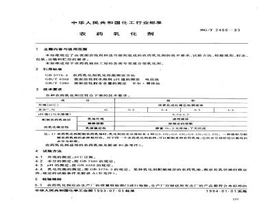 本标准规定了由表面活性剂和适当溶剂组成的农药乳化剂的技术要求、试验方法、检验规则、标志、包装、运输和贮存的要求。本标准适用于农药乳油加工用的各类专用混合型乳化剂。 HG/T 2466-1993 农药乳化剂 HG/T2466-1993 标准下载解压密码:www.bzxz.net