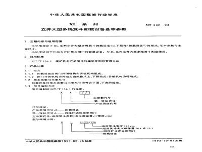 本标准规定了 XL系列立井大型多绳箕斗卸载设备(以下简称“卸载设备”)的型式、基本参数与主要尺寸。