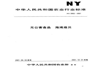NY 5062-2001 无公害食品 海湾扇贝 NY5062-2001 标准下载解压密码:www.bzxz.net