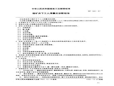 本标准适用于煤矿井下工人滑囊炎的诊断。MT 168-87