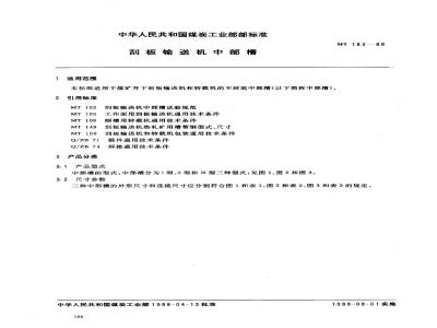 三种中部槽的外形尺寸和连接尺寸应分别符合图1和表1、图2和表2、图3和表3的规定。中华人民共和国煤炭工业部1988-04-13批准188