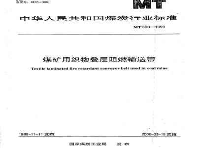 煤矿用织物叠层阻燃输送带是煤矿安全类产品,为尽快适应国际贸易、技术和经济交流的需要,本标准参照了国际先进的英国国家标准BS3289—1990《煤矿井下用织物输送带(包括燃烧性能)》和德国国家标准DIN22109--1998《用于煤矿的织物层输送带胶带》及国内与织物叠层输送带相关的标准,结合我国国情而制定。本标准的附录A是标准的附录,附录B是提示的附录。本标准由国家煤炭工业局行业管理司提出。本标准由煤炭工业煤矿安全标准化技术委员会归口。本标准起草单位:煤炭科学研究总院上海分院。本标准主要起草人:顾亚民、王利平、陶洁、郑琪。本标准委托煤炭行业煤矿安全标准化技术委员会防静电及阻燃材料分会负责解释。中华人民共和国煤炭行业标准