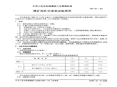 MT 87-1984 煤矿用乳化液泵试验规范 MT87-1984 标准下载解压密码:www.bzxz.net