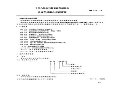 本标准规定了多级节段离心式泥浆泵的型式、基本参数和技术条件。MT 197-89