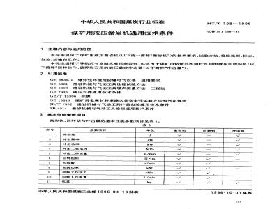 本标准规定了煤矿用液压凿岩机(以下统一简称“凿岩机”)的技术要求、试验方法、检验规则、标志、包装、运输和贮存。本标准适用于导轨式与支腿式液压凿岩机,也适用于煤矿用钻炮孔和锚杆孔用的液压回转钻机(以下简称“回转钻”)、破碎岩石用的液压破碎冲击器(以下简称“冲击器,)。 MT/T 198-1996 煤矿用液压凿岩机通用技术条件 MT/T198-1996 标准下载解压密码:www.bzxz.net