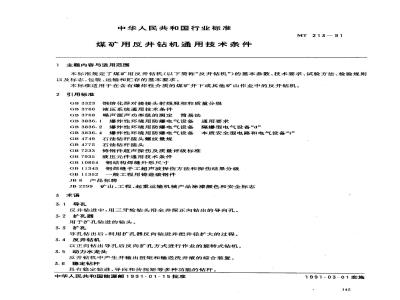 本标准规定了煤矿用反井钻机的基本参数、技术要求、试验方法、检验规则以及标志、包装、运输和贮存的基本要求。本标准适用于在含量爆炸性质煤矿井下或其他矿山作业中的反井钻机。 MT 213-1991 煤矿用反井钻机通用技术条件 MT213-1991 标准下载解压密码:www.bzxz.net