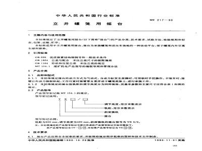 本标准规定了立井罐笼用摇台(以下简称“摇台”)的产品分类、技术要求、试验方法、检验规则和标志、包装、运输、贮存。本标准适用于立井罐笼用摇台。摇台为承接罐笼和进出车场地的一种活动平台,便于罐笼内外空重车顺利替换。 MT 217-1990 立井罐笼用摇台 MT217-1990 标准下载解压密码:www.bzxz.net