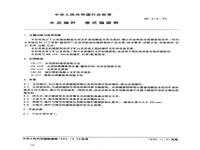 MT 219-1990 水泥锚杆 卷式锚固剂 MT219-1990 标准下载解压密码:www.bzxz.net