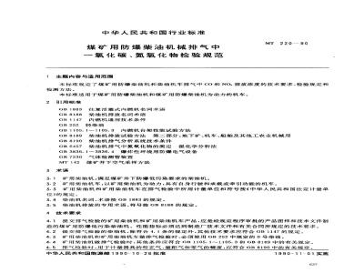 中文名称:煤矿用防爆柴油机械排气中一氧化碳 氮氧化物检验规范