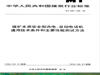 MT289—92煤矿本质安全型共电、自动电话机通用技术条件MT290一92煤矿本质安全型共电、自动电话机主要性能测试方法(1)