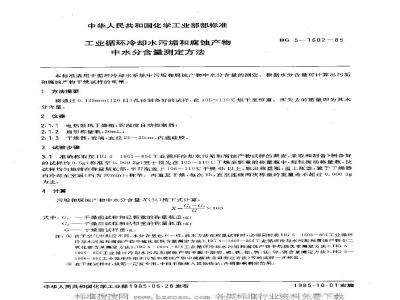 中文名称:工业循环冷却水污垢和腐蚀产物中水分含量测定方法