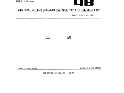 本标准主要起草人:方荣林、庄亚娅、王殿宝、王伟。自本标准实施之日起,原轻工业部发布的行业标准QB/T1159一91《二胡》废止。1范围