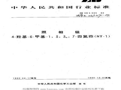 原标准号ZB G85005-90 HG/T 3574-1990 照相级 4-羟基-6-甲基-1,3,3a,7-四氮茚(ST-1) HG/T3574-1990 标准下载解压密码:www.bzxz.net