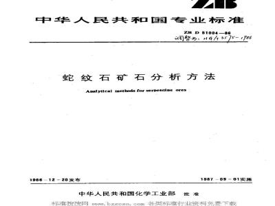 原标准号ZB/T D51004-86 HG/T 3575-1986 蛇纹石矿石分析方法 HG/T3575-1986 标准下载解压密码:www.bzxz.net