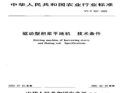 本标准规定了驱动型耕浆平地机的技术要求、、检验规则、标志、包装、运输和贮存。本标准适用于与13kw~58KW 四轮拖拉机配套的驱动型耕浆平地机。 NY/T 507-2002 驱动型耙浆平地机 技术条件 NY/T507-2002 标准下载解压密码:www.bzxz.net