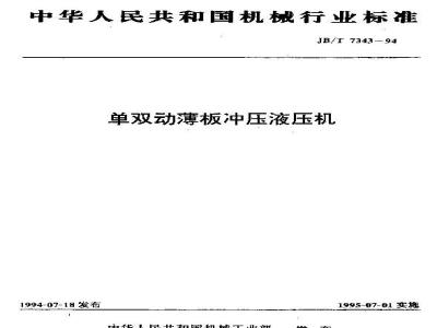 本标准规定了框架式和立柱式的单双动薄板冲压液压机的产品型式、基本参数与技术条件。 JB/T 7343-1994 单双动薄板冲压液压机 JB/T7343-1994 标准下载解压密码:www.bzxz.net