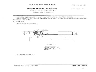 GB/T 4263-1984 带导柱直柄90°锥面锪钻 GB/T4263-1984 标准下载解压密码:www.bzxz.net