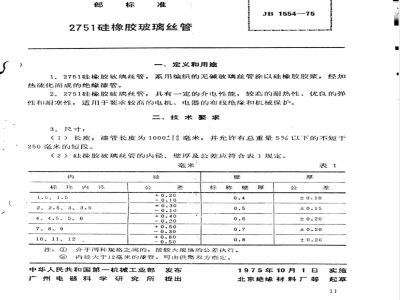 JB 1554-1975 2751硅橡胶玻璃丝管 JB1554-1975 标准下载解压密码:www.bzxz.net