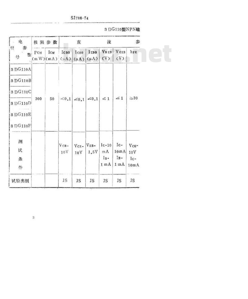 1、本标准适用于8DG110硅NPN平面型高频小功率半导体三极管。该产品用于电子设备的高频放大和振荡电路中。2、该产品除本标准规定外,应符合半导体三极管总技术条件SJ614—73的规定。