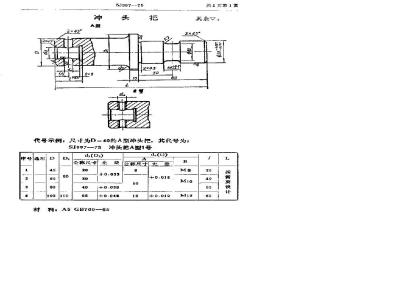 代号示例,尺寸为D=40的A型冲头把,其代号为:SJ997-75冲头把A型1号
