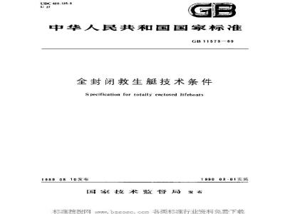 GB 11573-1989 全封闭救生艇技术条件 GB11573-1989 标准下载解压密码:www.bzxz.net
