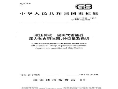 压力和容积范围、特征量及标识Hydraulic fluid power--Gas-loaded accumulatorswith separators-Range of pressures and volumes.characteristic quantities and identificalion1997-08-27发布