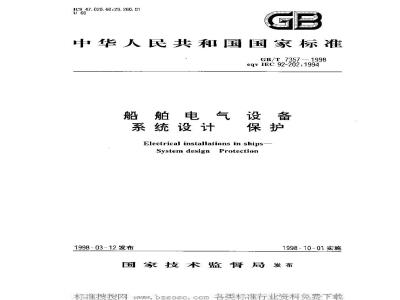 本标准是等效国际电工委员会IEC92号出版物的第202篇《船舶电气设备——系统设计——保护\(1994年3月第4版)及其第1号修订通知(1996年2月)对GB7357一87进行修订的,编马规则按GB/T1.1-1993标准化工作导则第1单元:标准的起草与表述规则第1部分:标准编写的基本视W.bzsosocomCB/T7357—1998