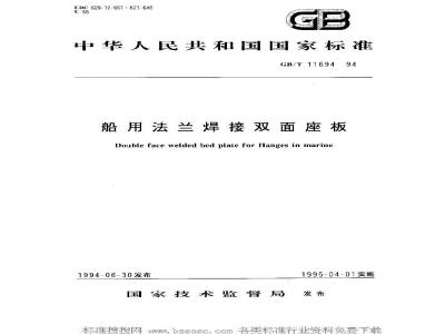 本标准规定了法兰连接尺寸按GB569、GB2501的船用法兰焊接双面座板的产品分类、技术要求、检验规则、标志、包装、运输和贮存。本标准适用于介质为淡水、海水、滑油、燃油、空气和温度不超过300℃蒸汽及蒸馏水的船用管路系统。碳钢材料的双面座板不适用于介质为蒸馏水的船舶管路系统。 GB/T 11694-1994 船用法兰焊接双面座板 GB/T11694-1994 标准下载解压密码:www.bzxz.net