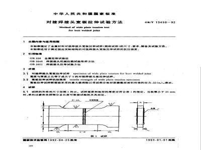 本标准规定了金属材料对接焊接头宽板拉伸试样的尺寸、要求、制备及试验方法。本标准适用于测定接近实际结构的对接焊接头宽板拉伸试样的抗拉强度。 GB/T 13450-1992 对接焊接头宽板拉伸试验方法 GB/T13450-1992 标准下载解压密码:www.bzxz.net