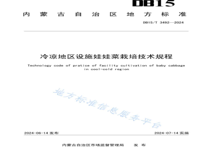 本标准规定了冷凉地区设施娃娃菜栽培的产地环境、育苗、定植、田间管理、病虫害防治及采收等技术要求,适用于内蒙古等冷凉地区娃娃菜设施化种植生产,为规范化栽培提供技术依据。