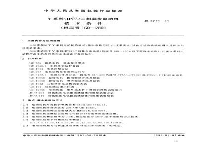 本标准适用于Y系列(IP23)三相异步电动机(机座号160~280)(以下简称电动机)、凡属本系列电动机所派生的各种系列电动机也可参照执行。2引用标准