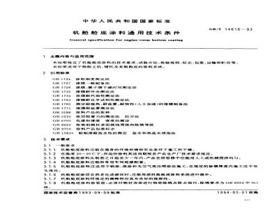 本标准规定了机舱舱底涂料的技术要求、试验方法、检验规则与标志、包装、运输、贮存。 本标准适用于钢船主机、辅机及泵舱舱底的涂料系统。 GB/T 14616-1993 机舱舱底涂料通用技术条件 GB/T14616-1993 标准下载解压密码:www.bzxz.net