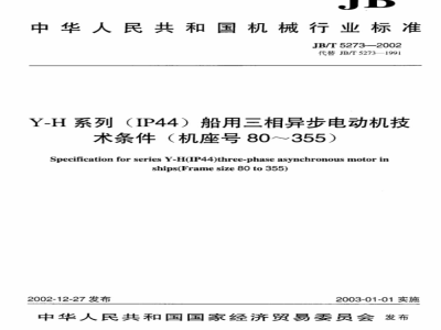 本标准规定了Y-H系列(IP44)船用三相异步电动机的型式、基本参数、技术要求、试验方法、检验规则以及标志、包装和运输等要求。 JB/T 5273-2002 Y-H系列(IP44)船用三相异步电 JB/T5273-2002 标准下载解压密码:www.bzxz.net
